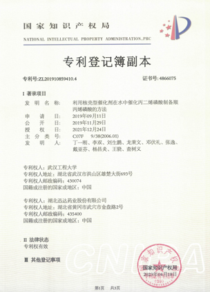 公司擁有一支高素質(zhì)科研隊(duì)伍,具備專業(yè)而高效的研發(fā)能力。近幾年,共取得科技成果30項(xiàng),其中9項(xiàng)獲國(guó)家發(fā)明專利,2項(xiàng)獲湖北省科技進(jìn)步獎(jiǎng),開(kāi)發(fā)新產(chǎn)品8個(gè),綠色合成、手性合成和催化等技術(shù)引領(lǐng)行業(yè)發(fā)展。主要銷往歐美、日本、韓國(guó)、中東、印度等40多個(gè)國(guó)家和地區(qū)。